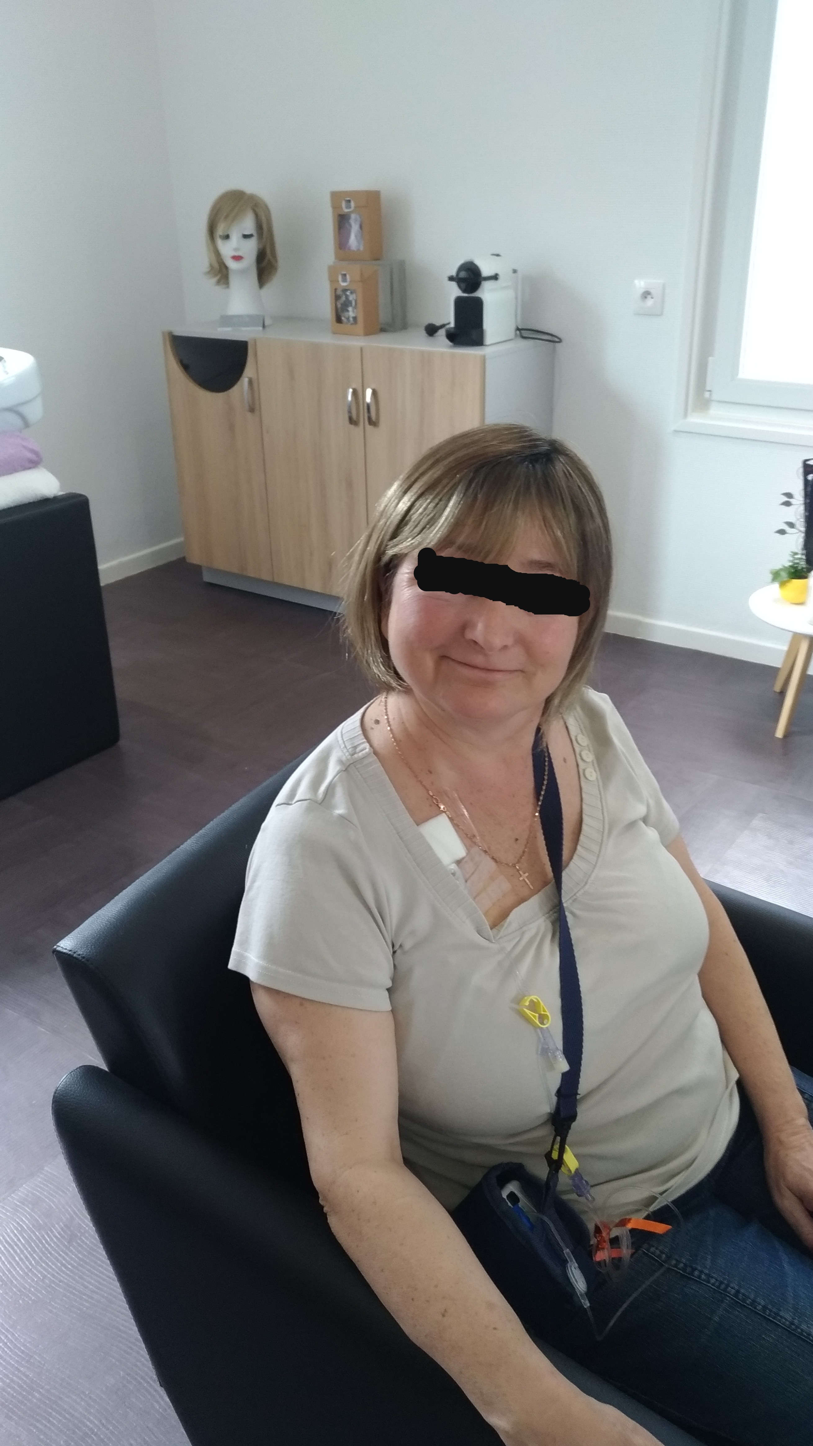 Bonjour, il est un fait c'est que toute chimiothérapie entraine la perte de vos cheveux. La clinique du Bois vous informant de ces effets secondaires vous indique que vous pouvez acquérir une perruque ou bonnets prisent en charge par la CPAM. Reste à trouver un cabinet agrémenté par la CPAM. J'ai cherché et trouvé près de chez moi tout simplement à Pérenchies. RDV fut pris pour le samedi 7 septembre. J'ai été accueilli par Isabelle spécialiste dans le domaine des prothèses, des bonnets etc..... Isabelle intervient également pour les clients qui subissent des pelades, ces messieurs qui ne souhaitent pas effectuer des implants mais qui, pour être à l'aise, se font poser des postiches qui ne se voient pas. L'accueil est très bon, le salon particulier est clair avec vue sur un petit jardin. Dès souhait exprimé Isabelle, chez qui on sent le professionnalisme et l'empathie avec sa cliente, vous apporte ses conseilles, ensuite à vous de faire des essais et comme dit mon médecin : vous devez vous plaire vous et non aux autres, vous sentir bien dans votre peau. Tout s'est très bien passé, j'ai choisi ma perruque et des bonnets pour être à l'aise chez moi et un bonnet ultra léger pour la nuit. J'ai choisi de couper super court mes cheveux avant pose de perruque et le lundi je suis allée chez ma coiffeuse pour faire raser le reste car gênant sous une perruque. N'hésitez pas et inutile ce courir par mont et par vaux pour trouver une merveilleuse conseillère. Ne pas oublier que cet état est momentané et qu'il est important de trouver une interlocutrice sympathique et professionnelle avec qui vous vous sentez bien. Retenez l'adresse: 42 rue E. Agache, PERENCHIES Cordialement